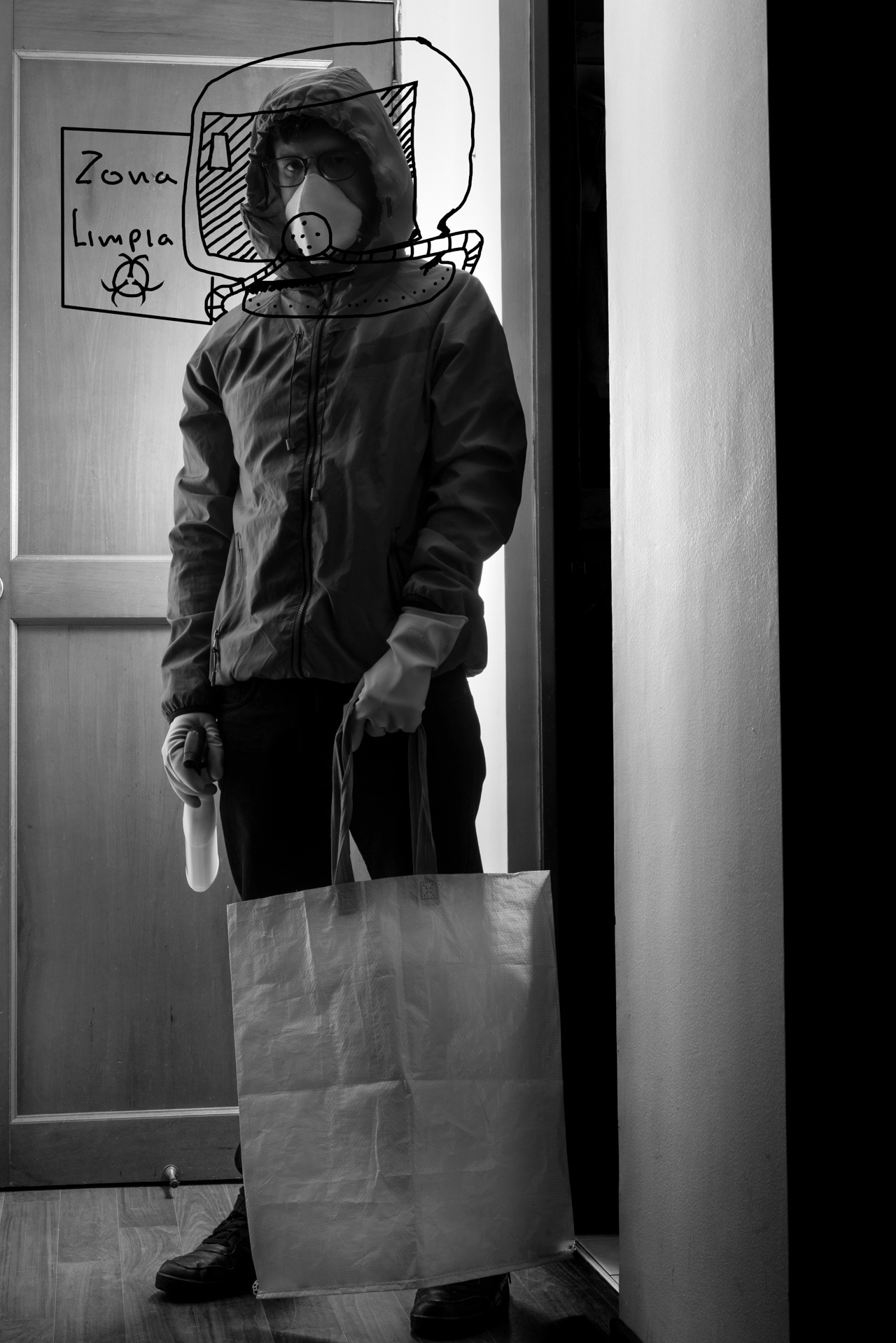 La incertidumbre de estar encerrado y solo en un apartamento de 20 m2 en Bogotá al inicio de la cuarentena, solo respondía un miedo incesante de no contagiar mis seres queridos en Popayán, el hecho anteriormente inocuo de no tener una lavadora, desencadenó una serie de disyuntivas que al frio de la soledad me revelo epifanías de mis carencias, así, por medio de la imagen intervenida traduzco mi realidad ideal o esos sentimientos y recuerdos que efímeramente venían a mi para mantenerme en apropiación del control.